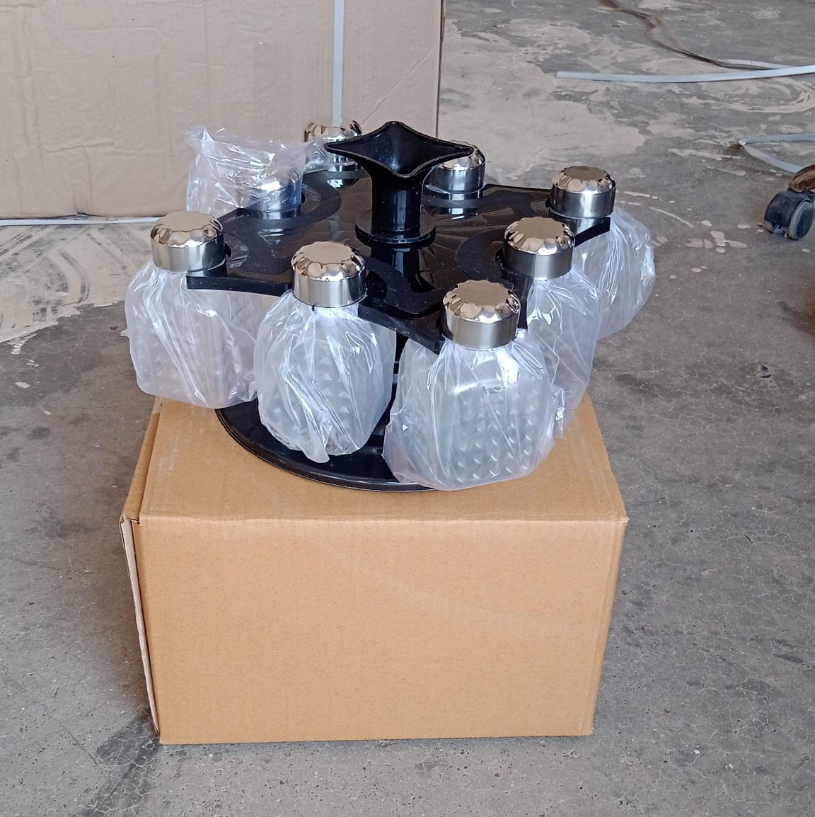 5502 All New Square 8 Bottle Design 360 Degree Revolving Spice Rack Container Condiment, Pieces Set, Square Small Container (MOQ :- 6 Pc )
