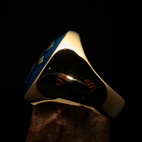 Solid Brass Men's blue Cross Lorraine Ring high polished with Enamel. The Ring has a solid Back.